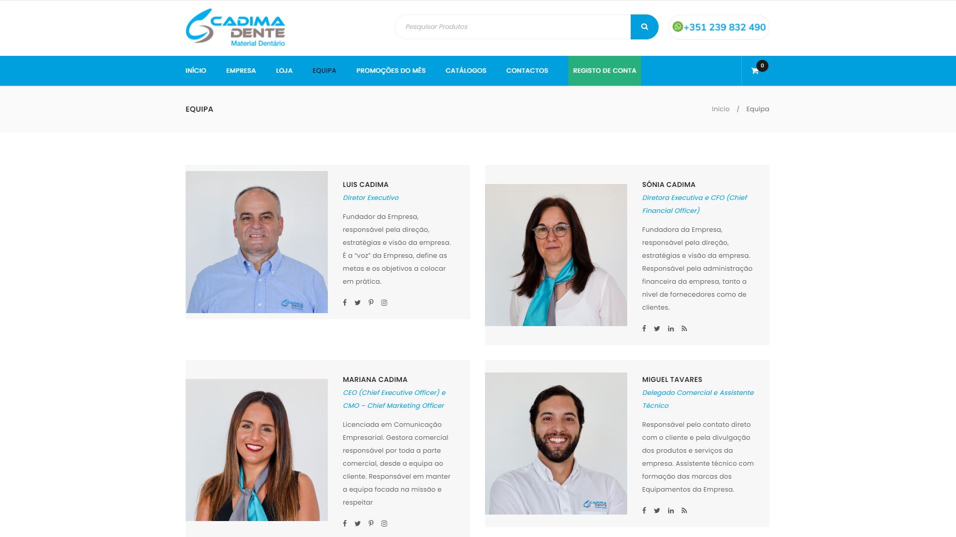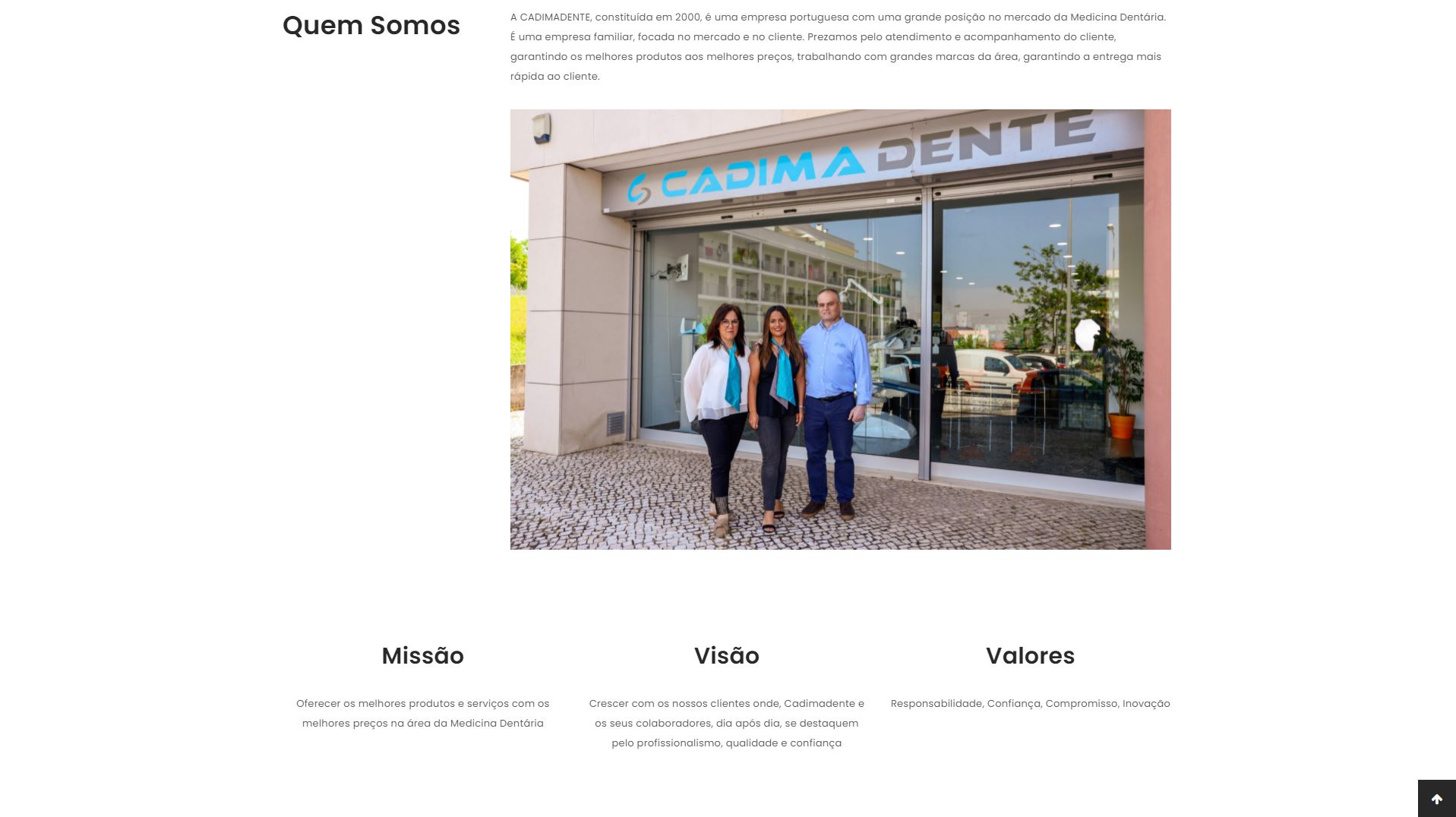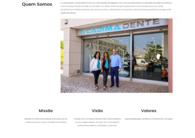 “A CADIMADENTE é uma empresa familiar, focada no mercado e no cliente. Prezamos pelo atendimento e acompanhamento do cliente, garantindo os melhores produtos aos melhores preços, trabalhando com grandes marcas da área, garantindo a entrega mais rápida ao cliente.”