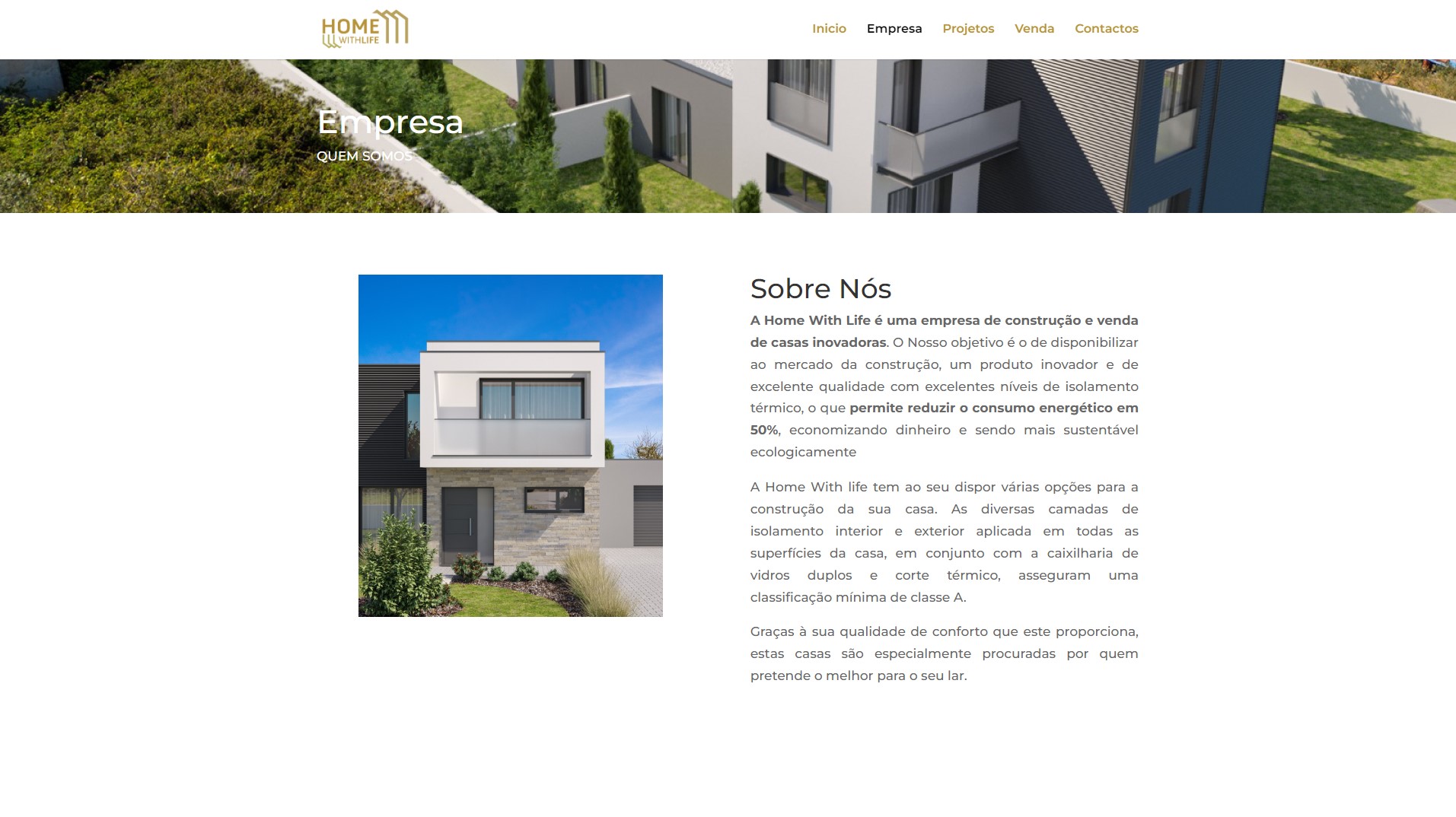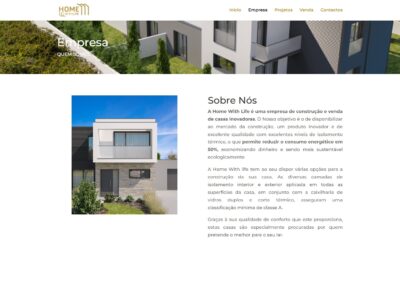 “A Home With Life é uma empresa de construção e venda de casas inovadoras. O Nosso objetivo é o de disponibilizar ao mercado da construção, um produto inovador e de excelente qualidade com excelentes níveis de isolamento térmico, o que permite reduzir o consumo energético em 50%, economizando dinheiro e sendo mais sustentável ecologicamente.”