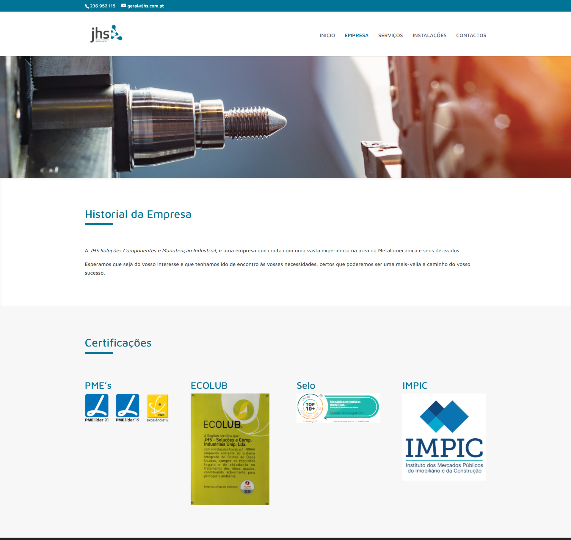 “A JHS é uma empresa que conta com uma vasta experiência na área da Metalomecânica e seus derivados.”