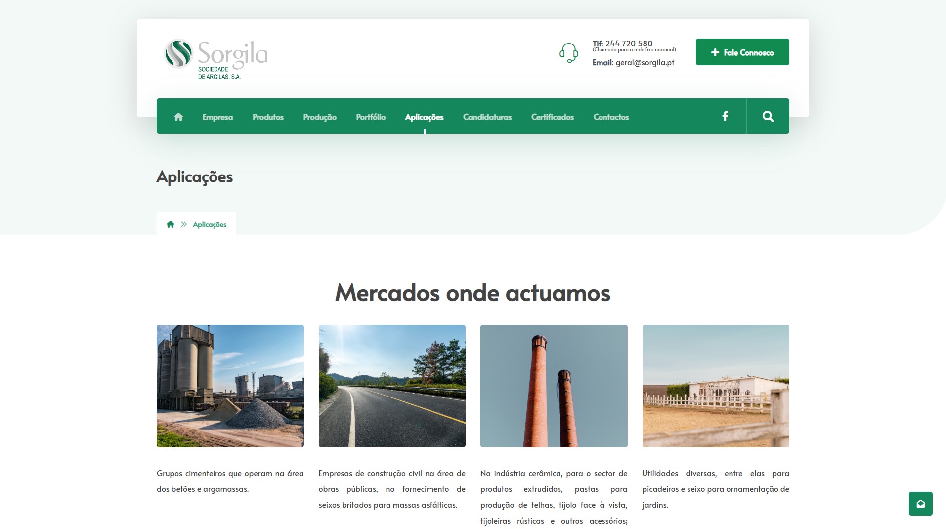 “Os principais clientes da Sorgila para os agregados, estão ligados a grupos cimenteiros que operam na construção civil e obras públicas na área dos betões e argamassas. No setor cerâmico, além de argilas e caulinos para o fabrico de telha, faiança, grés, refratário, pavimento e revestimento, a Sorgila fornece pastas pré-preparadas para o fabrico de telhas, ladrilhos e tijolos face à vista.”